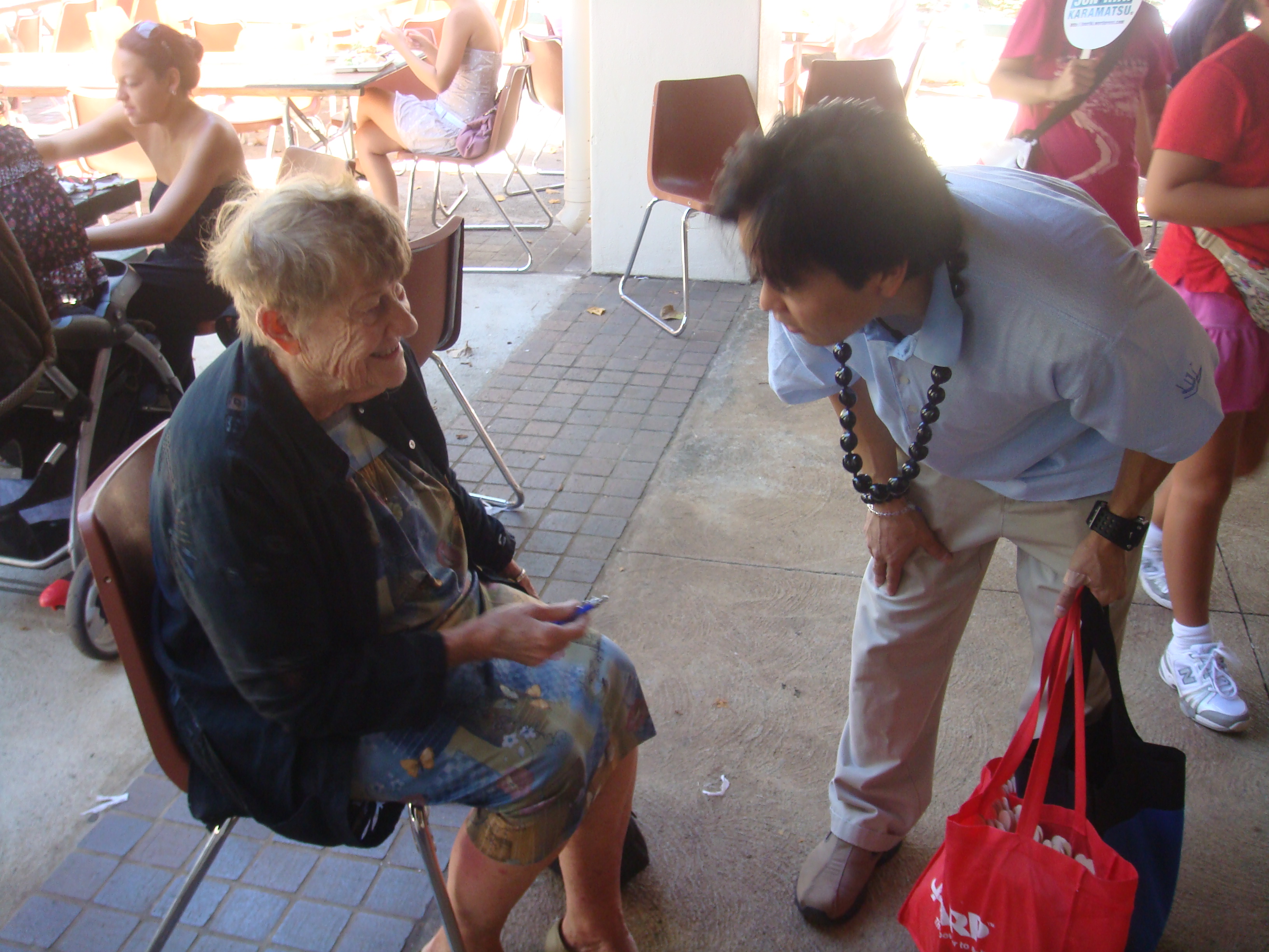 As I campaigned throughout the state, it has been interesting to meet so many people. The seniors really touch me because of the sacrifice they have done for us. Many seniors tell me they see me on T.V. Even though I am in the media often, they really appreciate my old school style of campaigning and we are often linked through my passion for culture, which means so much to them. A number of them told me that I am like the old school times. One lady told me, “Good you do this [meet the people]. This is how it [politics] used to be in the old days.” A middle-aged lady told me I am like a blast from the past and that I am like the old school guys. I signed my autograph on a number of my fans for seniors at the Portuguese Festival. With the Filipino community, I am touched when the nanas and tatas hug me. I am honored to represent many of them in the House of Representatives. I also really enjoy talking to all the Hawaiian seniors. I met a number of them at a hula performance. Some of the elder Japanese ladies like to speak to me in Japanese even though it is pretty clear that I am a Yonsei (fourth generation Japanese) or Gosei (fifth generation Japanese). They bow and I bow back. With my background in Jodo Shu Buddhism and Shintoism, many senior AJAs bring up our connection and seem so happy I continue many traditions that are fading with the younger generations. A number of seniors told me I handled my mistake (DUI) well and to keep going. I have met so many of my grandparents’ friends, especially grandpa Maurice Karamatsu with his big network from his days as former Vice President of Duty Free Shoppers, executive for Hawaiian Airlines, and President of the Hawaii Buddhist Council. Some of the elder ladies are so blunt when they talk to me, it is funny, and it reminds me of my grandma Ellen Sakai.