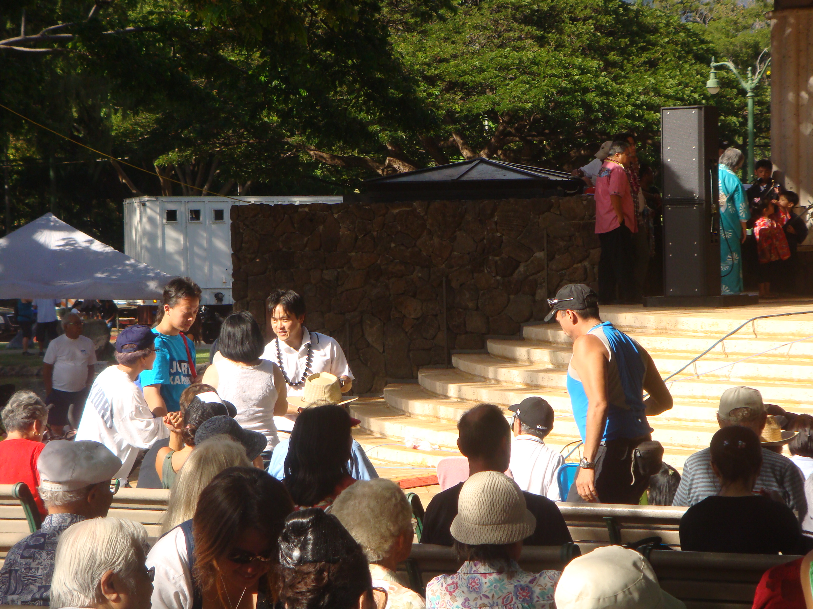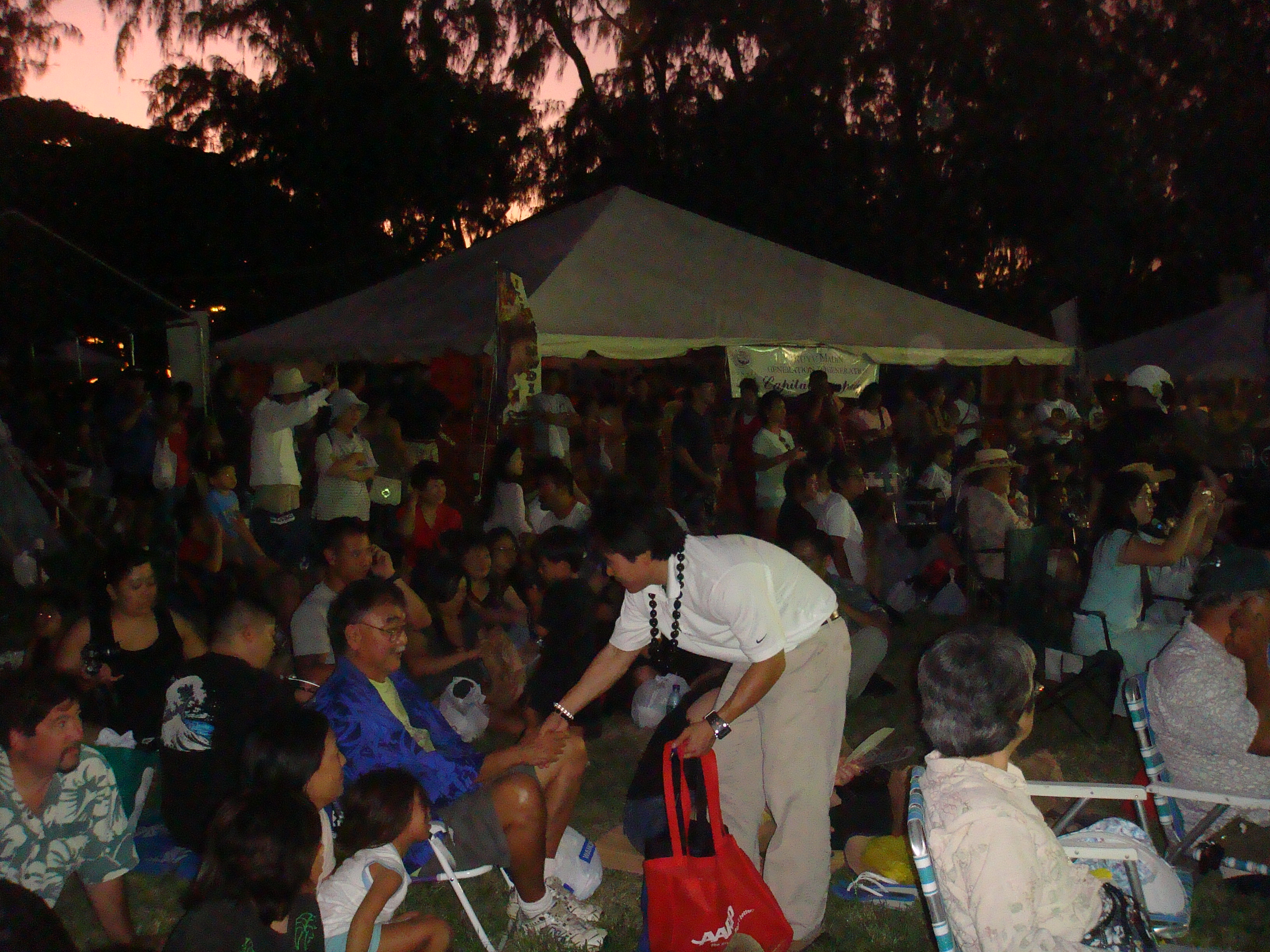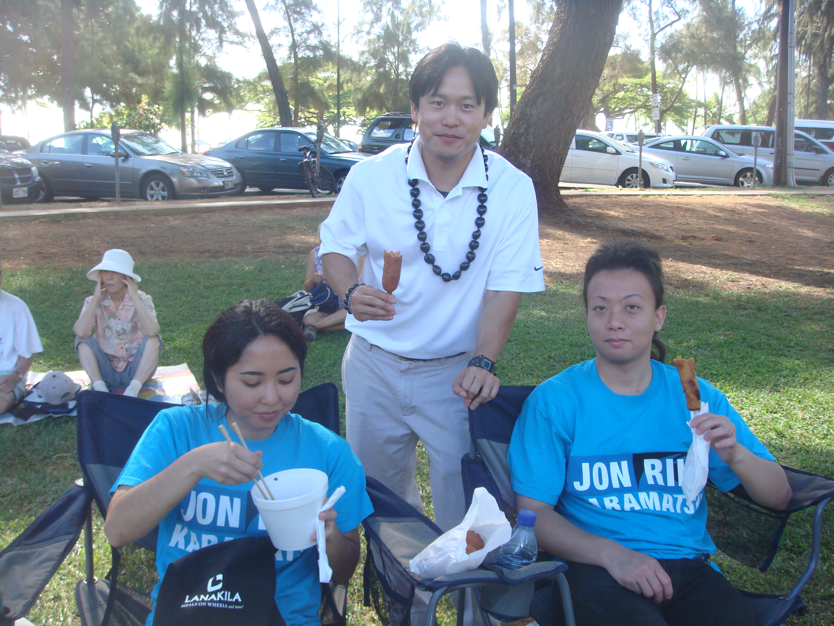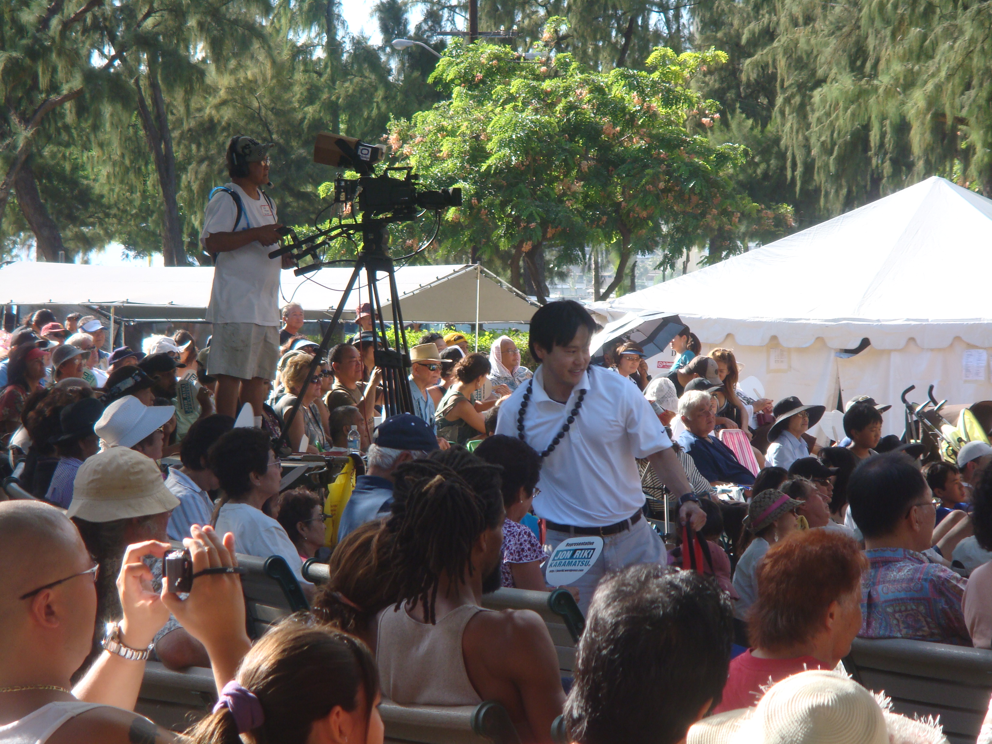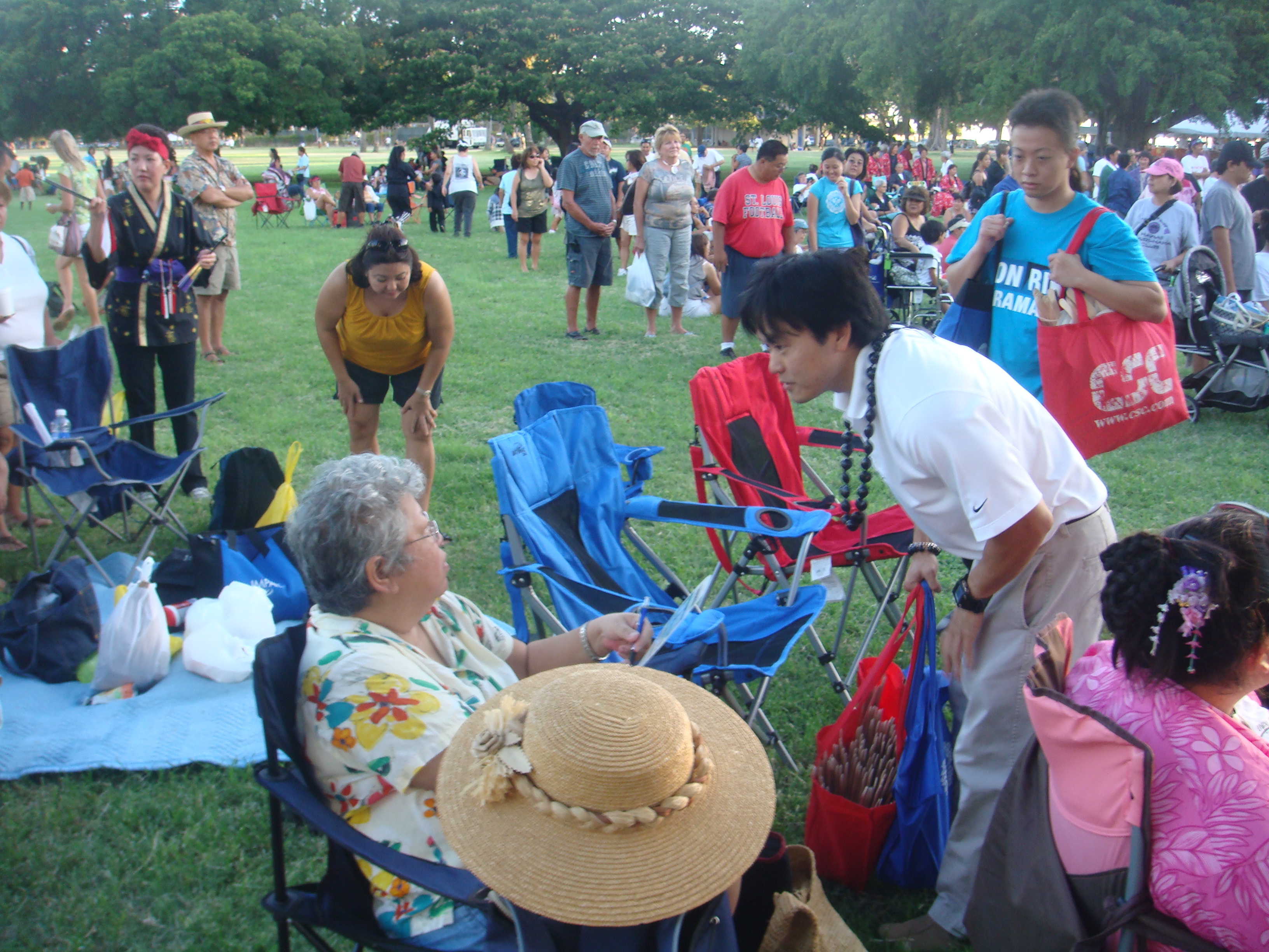 Recently a number of seniors at the Senior Fair told me, “Thank you for running.” I told them, “No, thank you for all you have done for my generation so we can can go to public school and do well.” I will never forget the look on their faces. The were touched and some of their eyes welted up a little. My eyes got teary but I held them in. The most touching was at the Okinawan Festival when en elder AJA lady started to cry when I knelt before her and gave her my pen.
