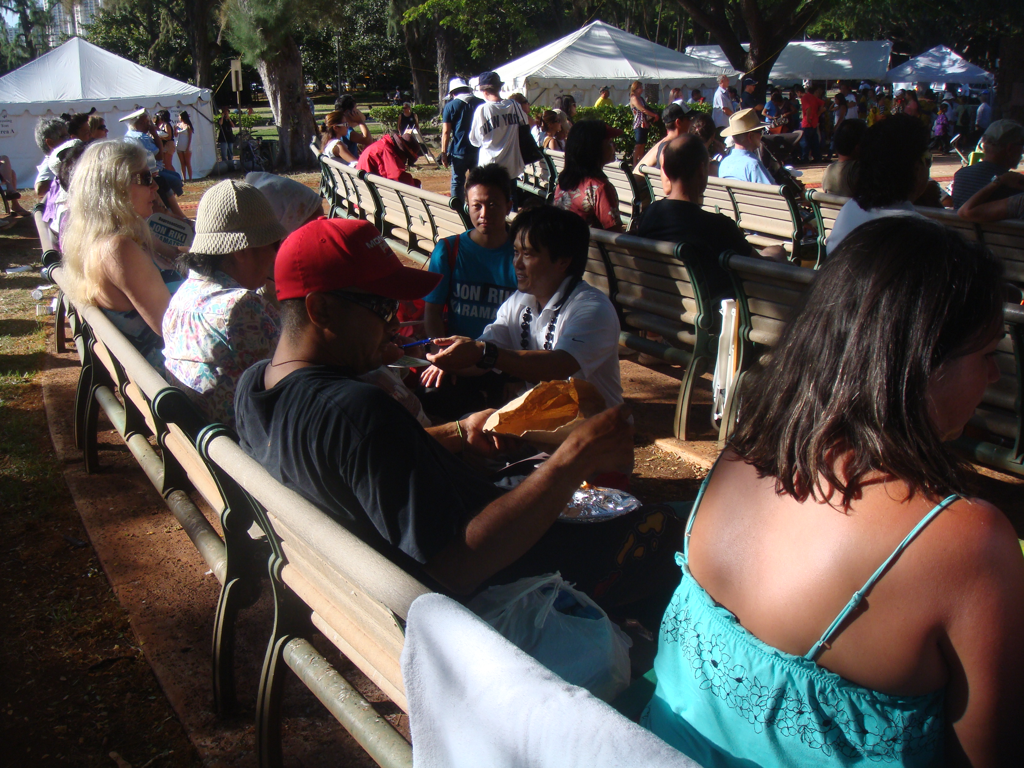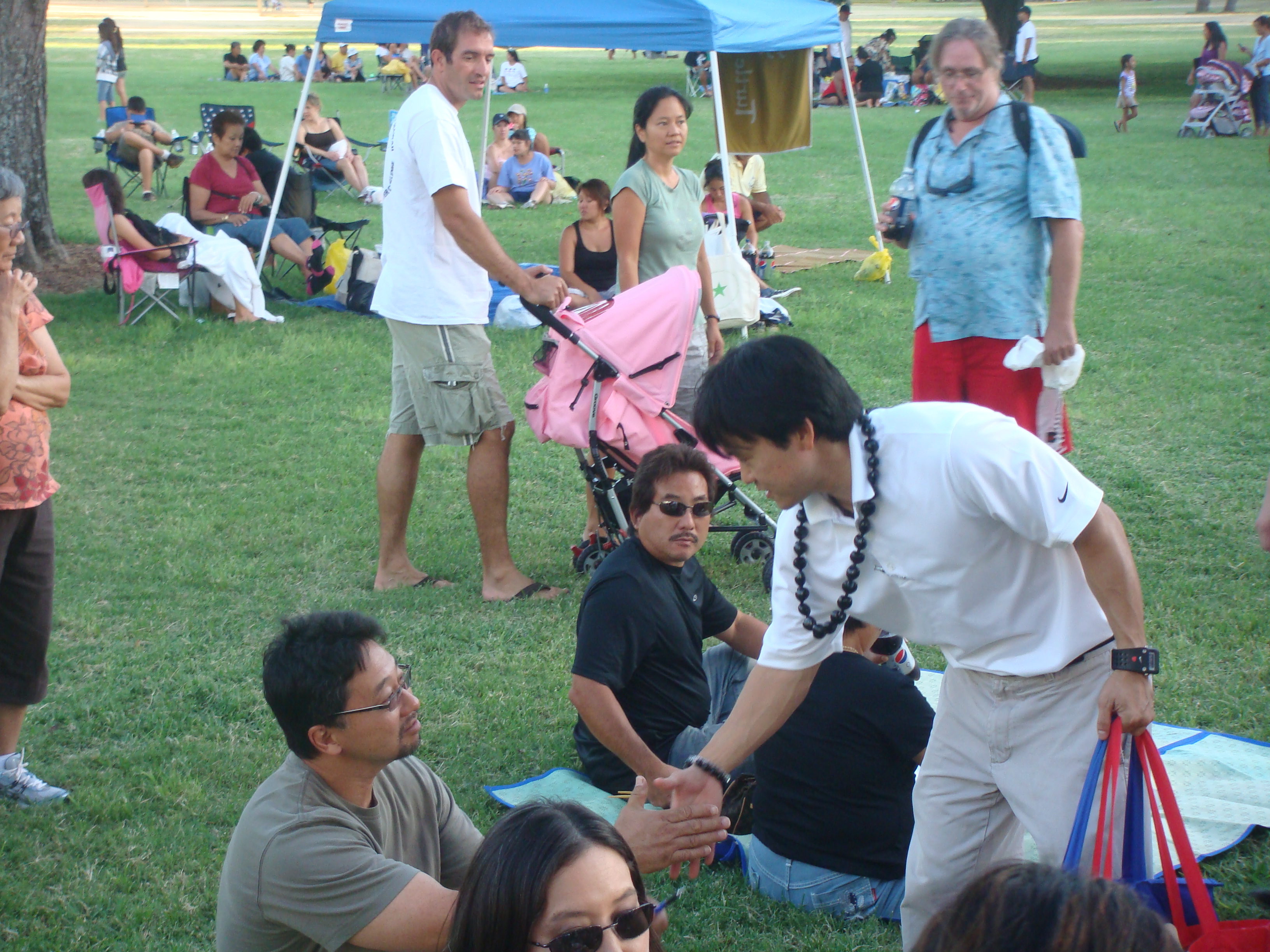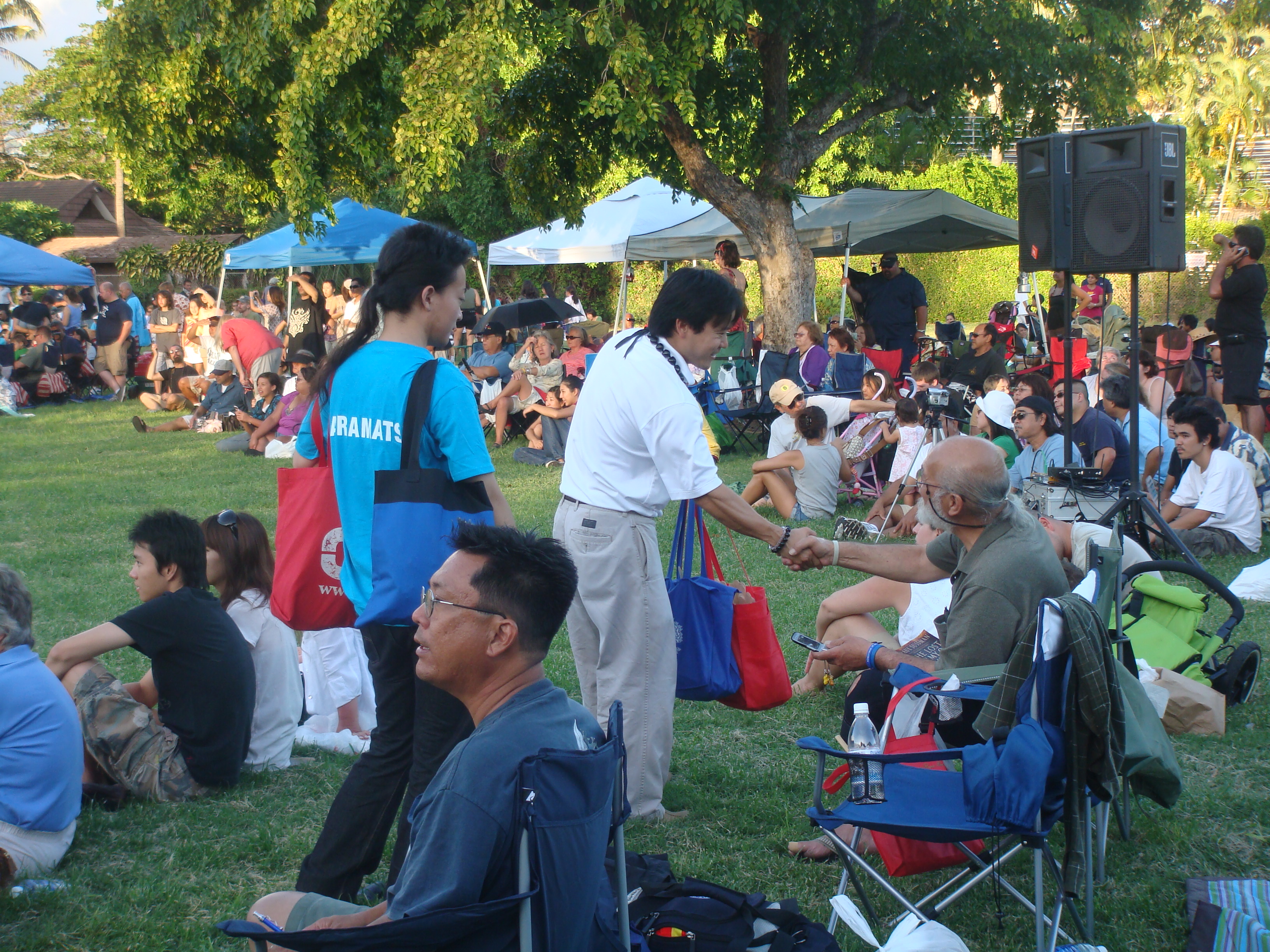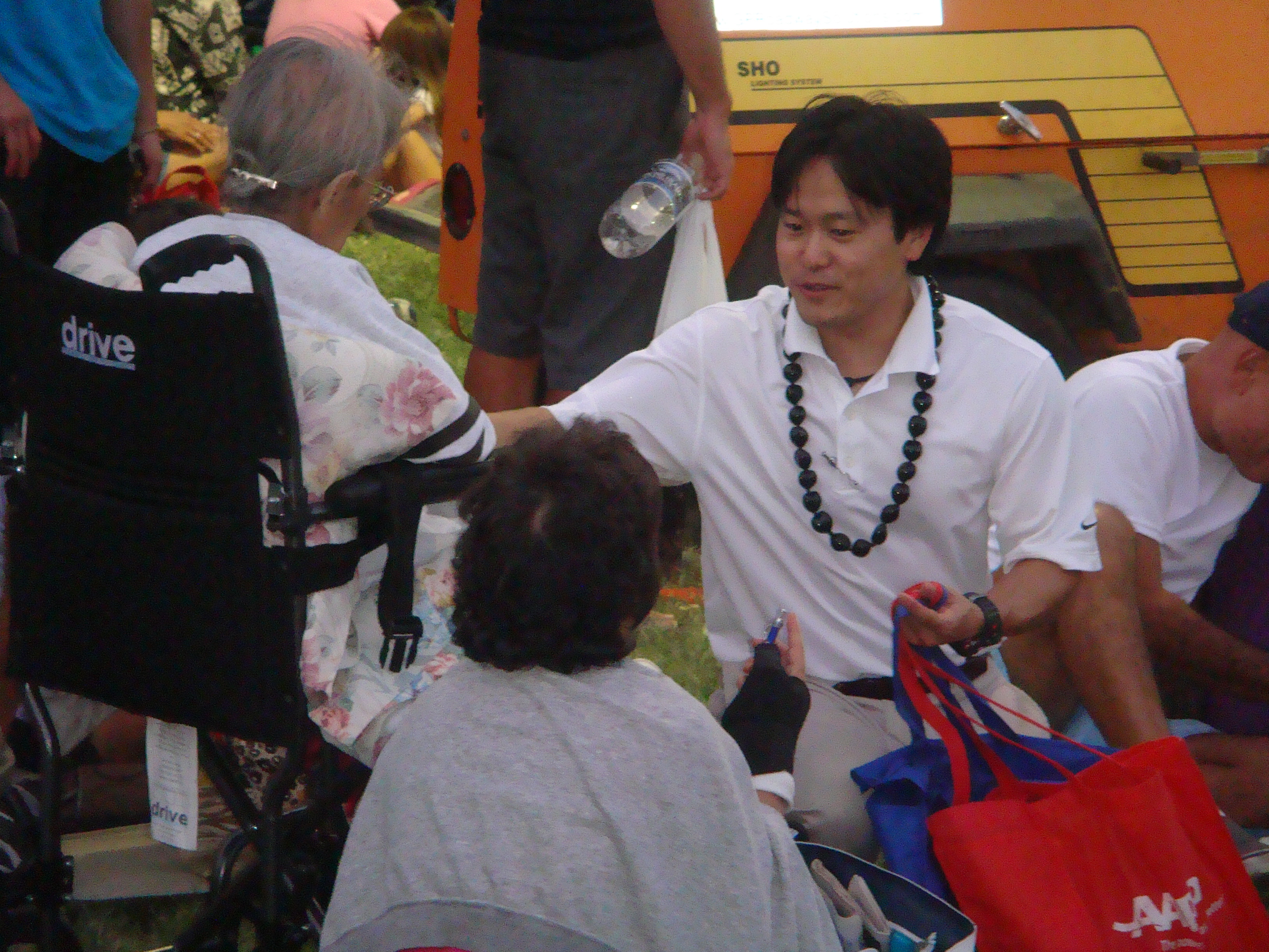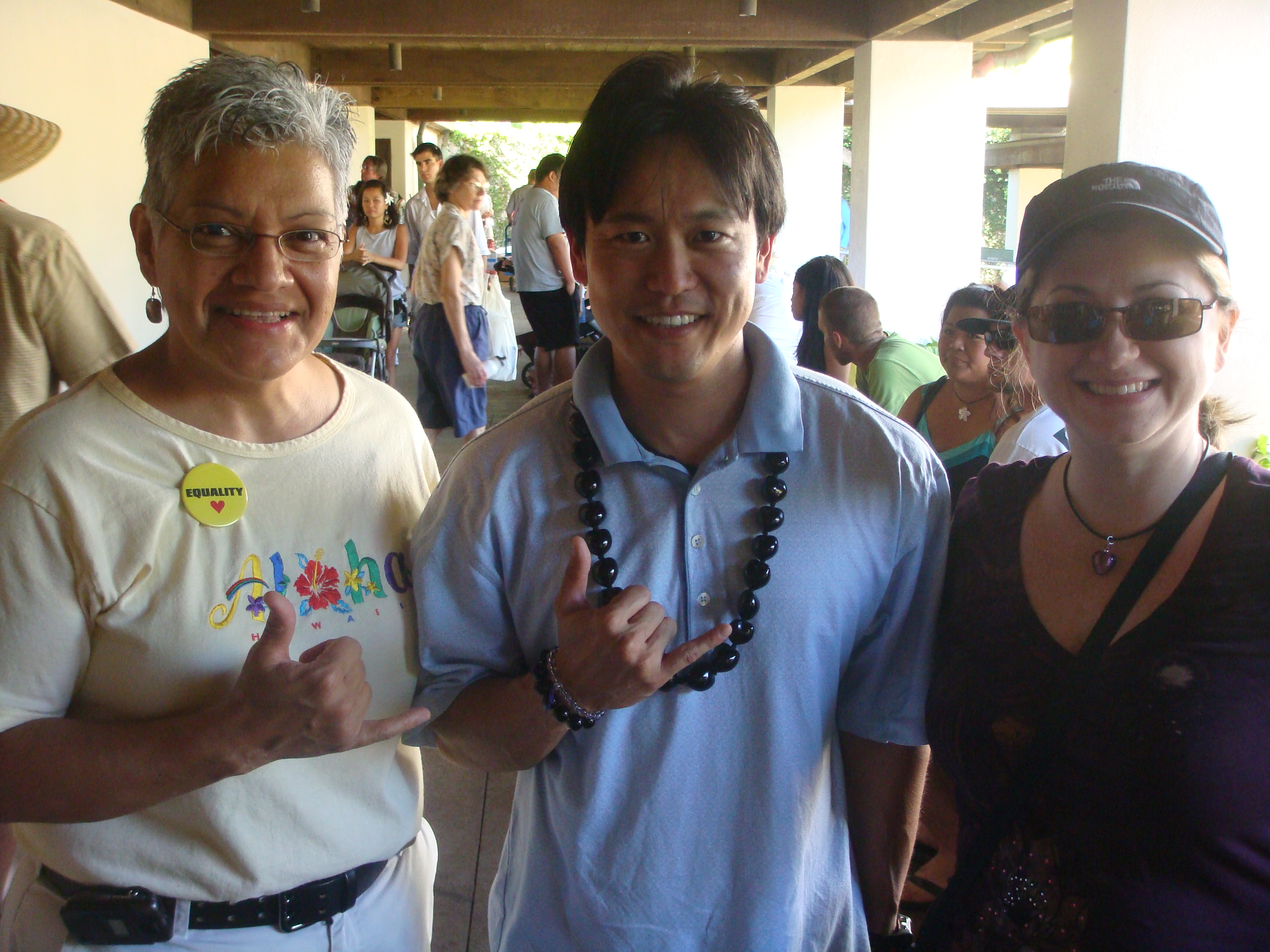 Recently a number of seniors at the Senior Fair told me, “Thank you for running.” I told them, “No, thank you for all you have done for my generation so we can can go to public school and do well.” I will never forget the look on their faces. The were touched and some of their eyes welted up a little. My eyes got teary but I held them in. The most touching was at the Okinawan Festival when en elder AJA lady started to cry when I knelt before her and gave her my pen.