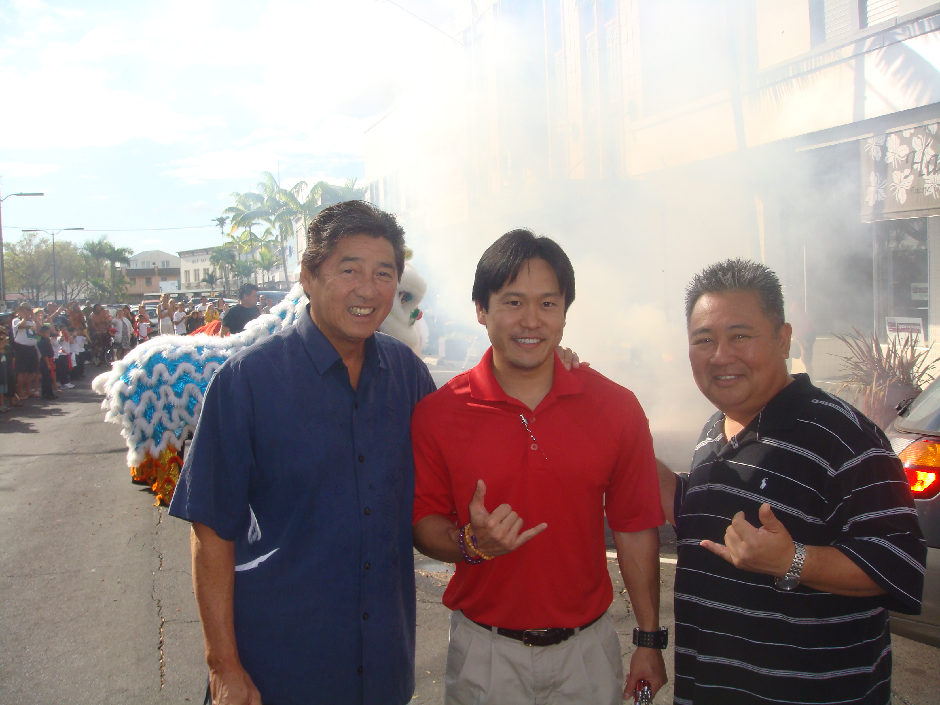 Rep. Jerry Chang, Rep. Jon Riki Karamatsu, & Councilman "Fresh Onishi" at the 8th Annual Hilo Chinese New Year Festival on Sat., Feb. 13, 2010.