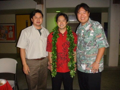 Alec Sou, Rep. Jon Riki Karamatsu, & Brandon Mitsuda at Karamatsu's Feb. 18, 2010 fundraiser at St. Andrew's Priory.