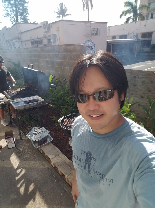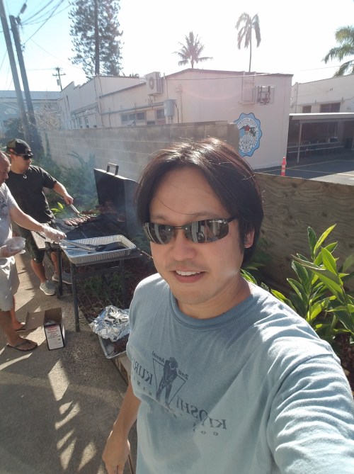 Here, I’m with Honolulu Prosecuting Attorney Keith M. Kaneshiro at Jodo Mission of Hawaii’s bon dance in 2012.