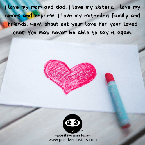 I love my mom and dad. I love my sisters. I love my nieces and nephew. I love my extended family and friends. Now, shout out your love for your loved ones! You may never be able to say it again. โค๏ธโ