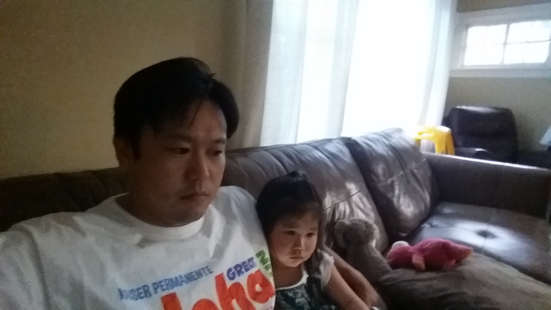 Jon and his 2-year old niece E watching an animated movie on March 15, 2015 in San Mateo, California.