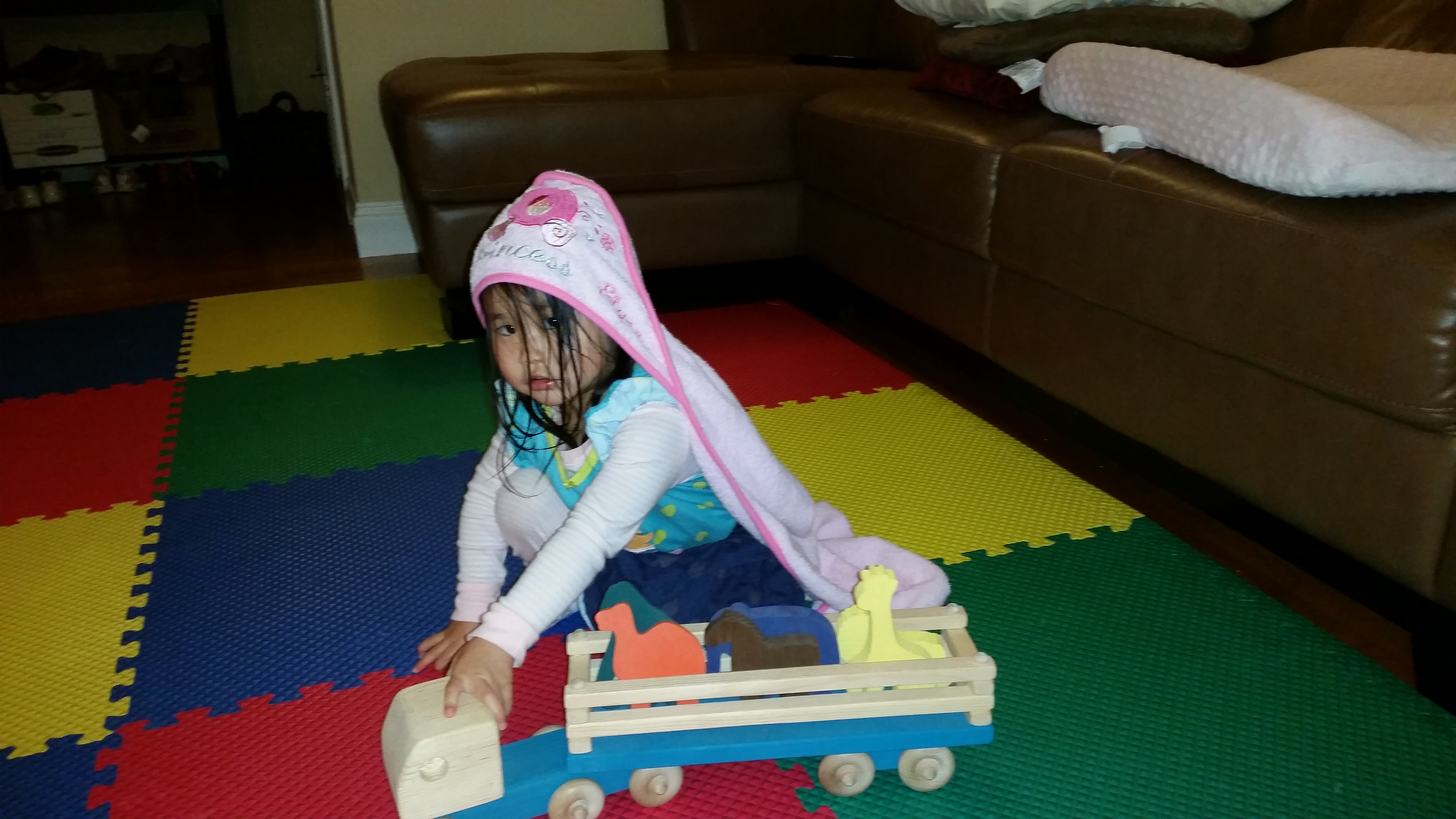 Jon playing with his 2-year old niece with her “aminals” as she called them on March 25, 2015 in San Mateo, California.