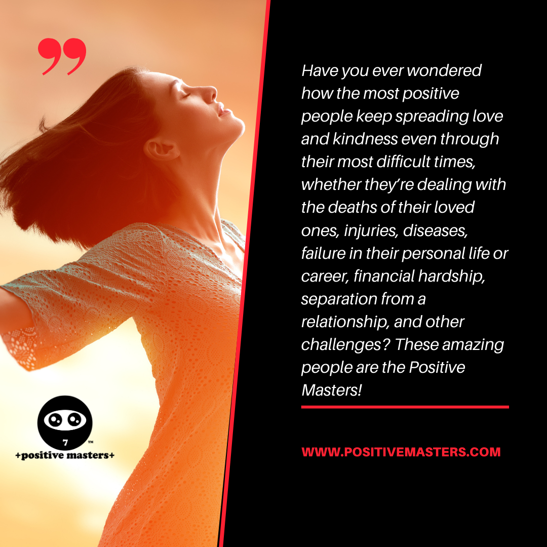 Have you ever wondered how the most positive people keep spreading love and kindness even through their most difficult times, whether they’re dealing with the deaths of their loved ones, injuries, diseases, failure in their personal life or career, financial hardship, heartbreak, and other challenges? These amazing people are the Positive Masters!