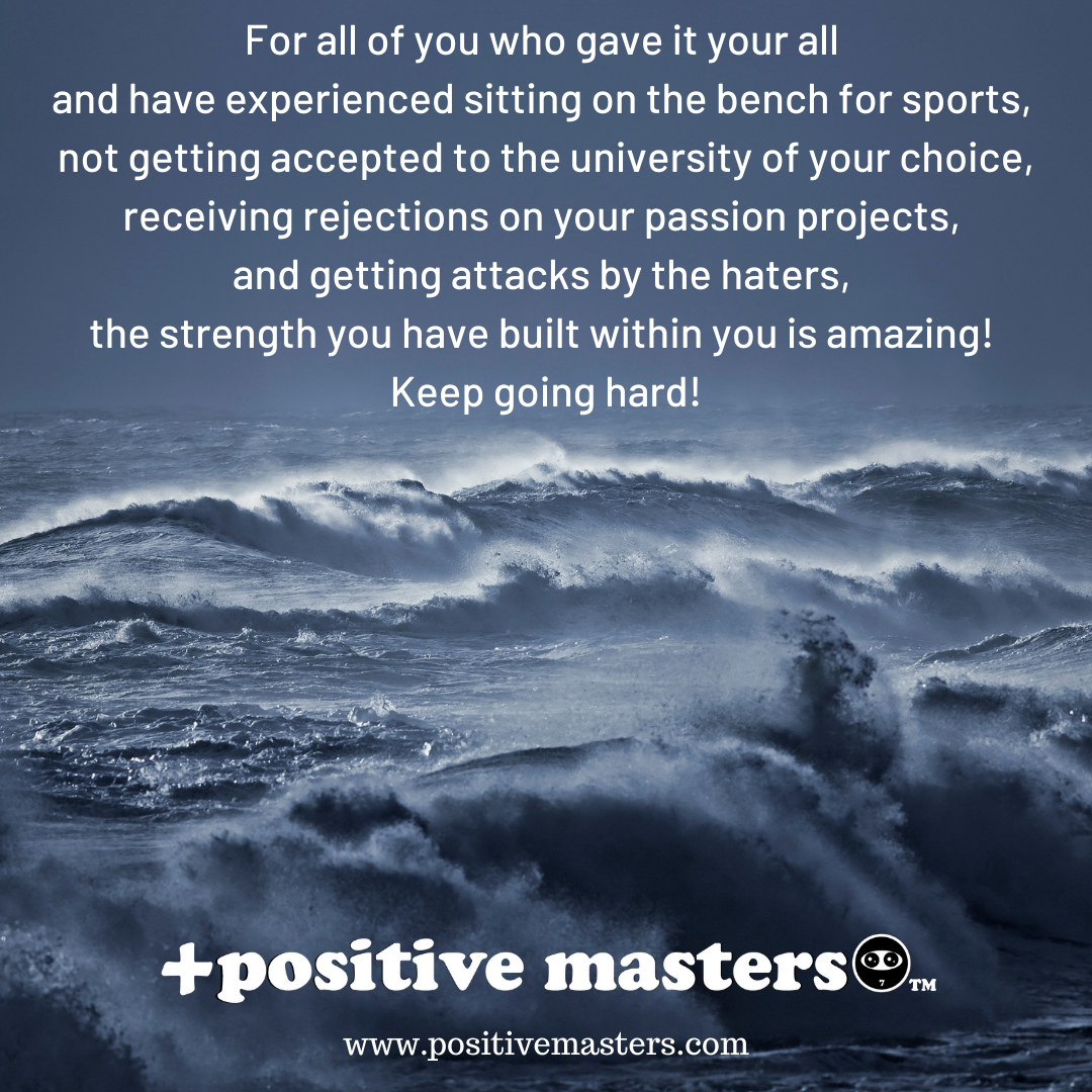 For all of you who gave it your all and have experienced sitting on the bench for sports, not getting accepted to the university of your choice, receiving rejections on your passion projects, and getting attacks by the haters, the strength you have built within you is amazing!